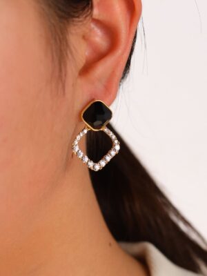 The structured silhouette adds a bold, architectural touch, while the sparkling stones catch the light beautifully for just the right amount of glamour. Crafted in a polished gold finish, the design is lightweight and comfortable, making these earrings ideal for all-day wear—from office sophistication to evening elegance.