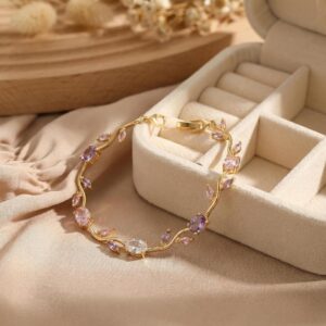 Inspired by the beauty of nature, the leaf light elegance Bracelet features a flowing gold design that mimics a winding vine, delicately wrapped with shimmering crystal stones and vibrant green leaf accents. Each detail is thoughtfully crafted to capture the essence of fresh greenery and soft sunlight, creating a piece that feels both elegant and organic.