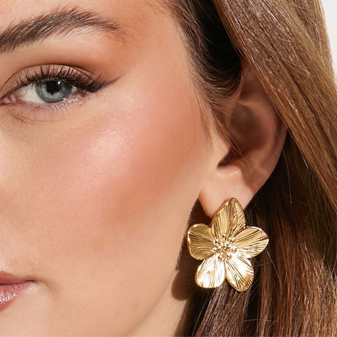 Beautiful gold-toned floral stud earrings with a textured finish, designed to add elegance and charm to any outfit. Lightweight, classy, and perfect for both daily wear and special …
